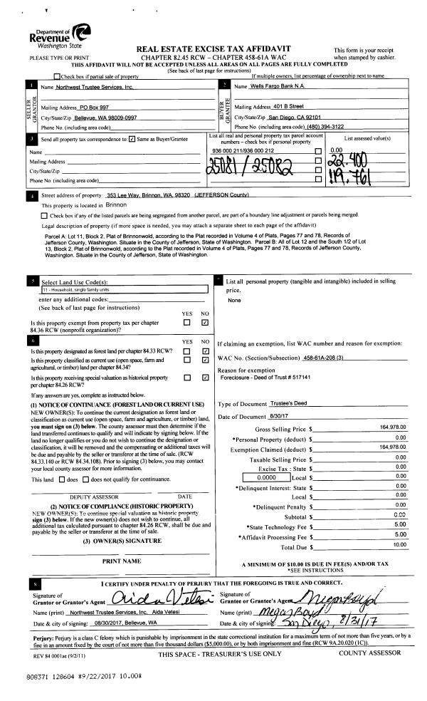 | Mailing Address: | LINDA L GERMEAU 474 PETERSON RD PORT TOWNSEND, WA 98368-9761 | % Ownership: | 100.0000000000% |