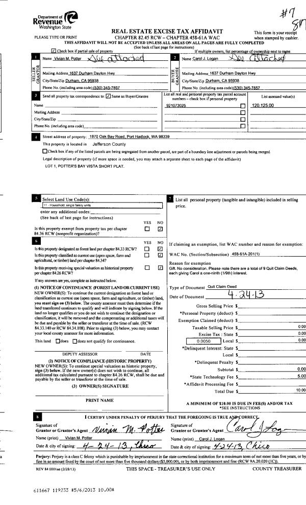 | Mailing Address: | 250 CENTER PARK WY SEQUIM, WA 98382 | % Ownership: | 100.0000000000% |