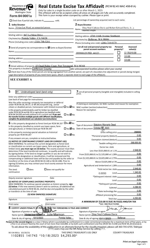 | 1 | 1677A | Terr/Mtn/No View 6-15 Acres | 7.8700 | 342817.20 | 0.00 | 0.00 | 0.00 | $58,435 | $0 |