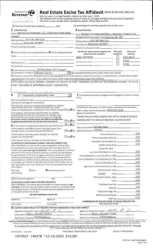 | 4 | 06/06/2005 | SWD | Statutory Warranty Deed | GETZ, BARBARA | NORTHWEST WATERSHED INSTITUTE | | | $412,500.00 | 103846 | 0 |