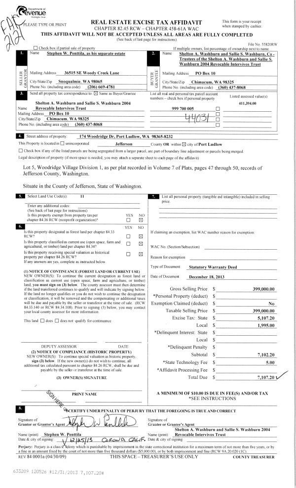 | Mailing Address: | THOMAS E JOHNSON TRUSTEE 1561 DABOB RD QUILCENE, WA 98376-9725 | % Ownership: | 100.0000000000% |