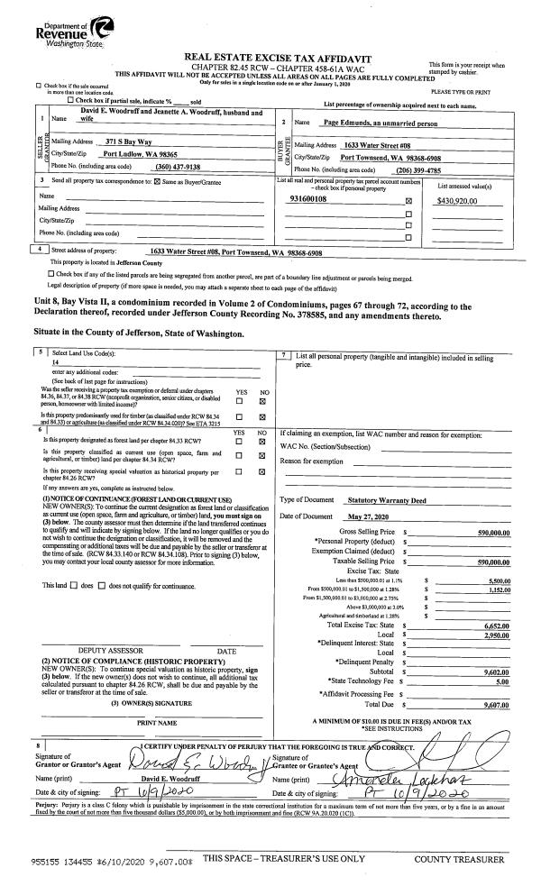 | Mailing Address: | 907 WOODSTOVE RD PORT TOWNSEND, WA 98368-9818 | % Ownership: | 100.0000000000% |