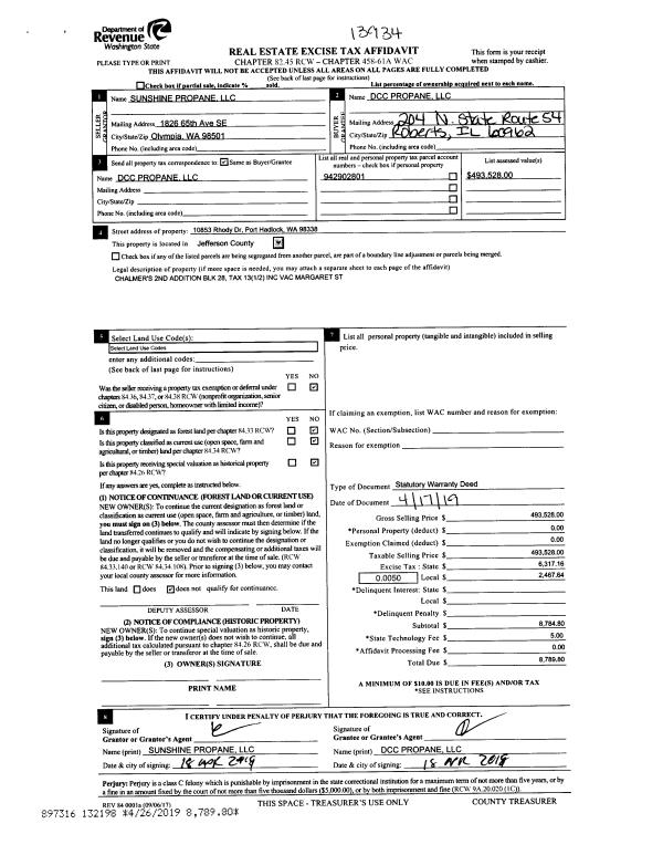 | Mailing Address: | 1033 LAWRENCE ST PORT TOWNSEND, WA 98368-6523 | % Ownership: | 100.0000000000% |
