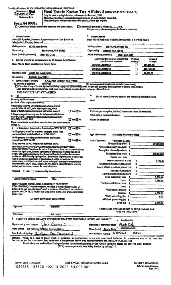 | 5 | 01/20/2022 | CONS EASE | CONSERVATION EASEMENT | KAWAMOTO FARMS LLC | JEFFERSON LAND TRUST | | | $83,000.00 | 138449 | AF#651350 & v39/P149-50 |