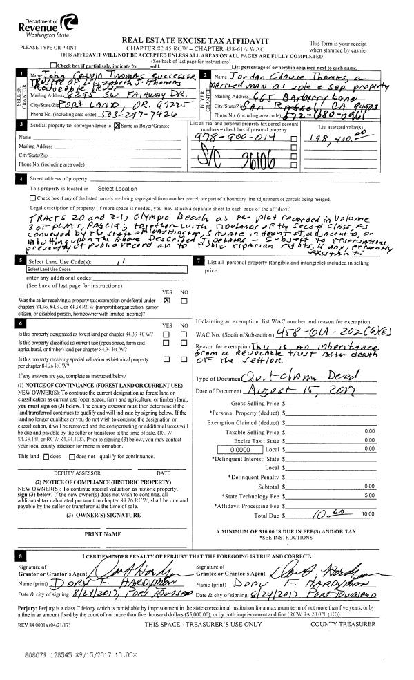| 2 | 09/01/2018 | QCD | Quit Claim Deed | | | | | | 130939 | |
