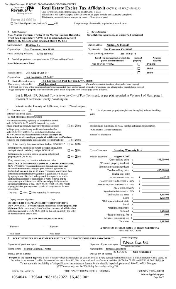 | 1 | 12/13/2021 | SWD | Statutory Warranty Deed | | | | | | 138484 | |