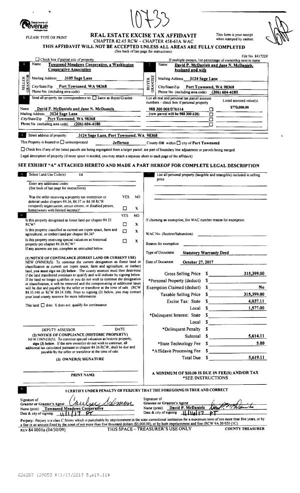 | Mailing Address: | PO BOX 621 QUILCENE, WA 98376-0621 | % Ownership: | 100.0000000000% |