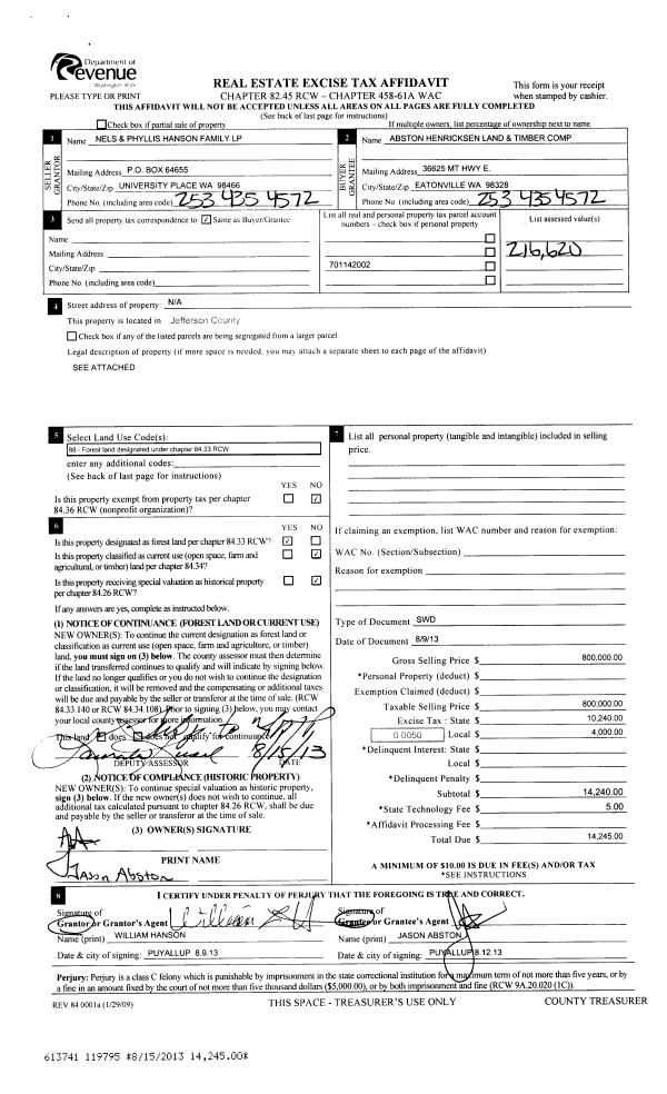 | Mailing Address: | PO BOX 54 QUILCENE, WA 98376-0054 | % Ownership: | 100.0000000000% |