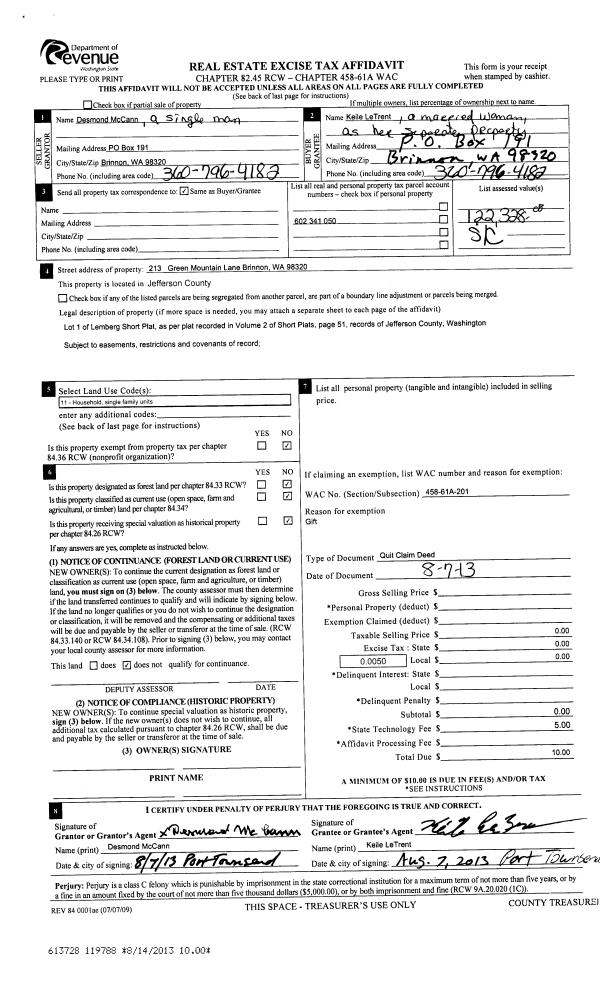 | 3 | 10/09/2013 | SWD | Statutory Warranty Deed | RICHARD G LOUSHIN | JENS & KARLE COPPENRATH | | | $25,000.00 | 120123 | |