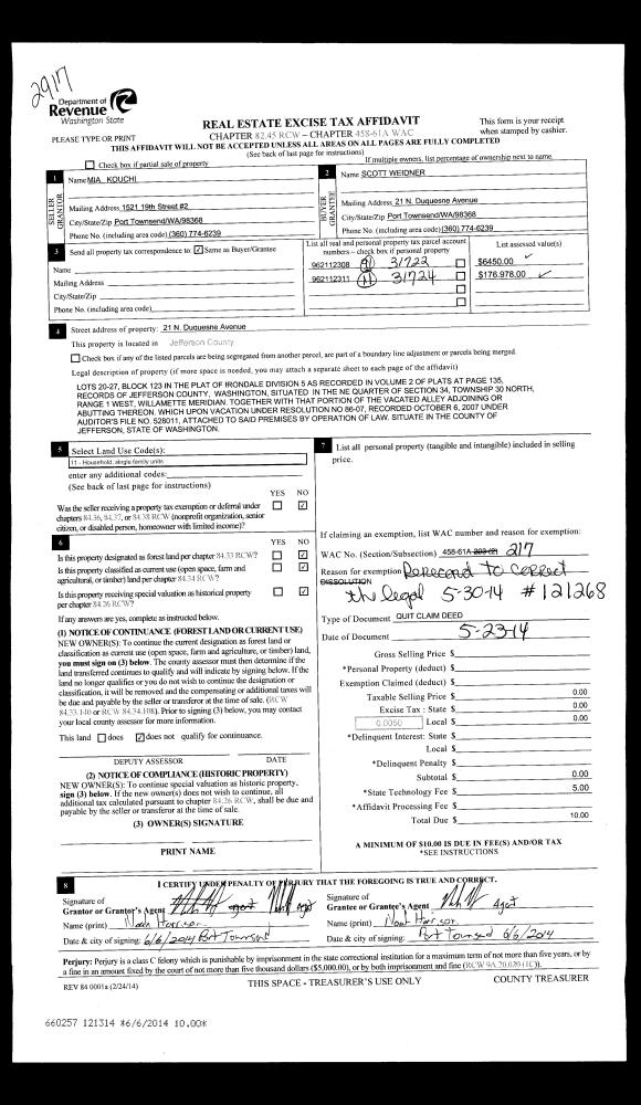| 2 | 12/01/2015 | QCD | Quit Claim Deed | | | | | | 124467 | |