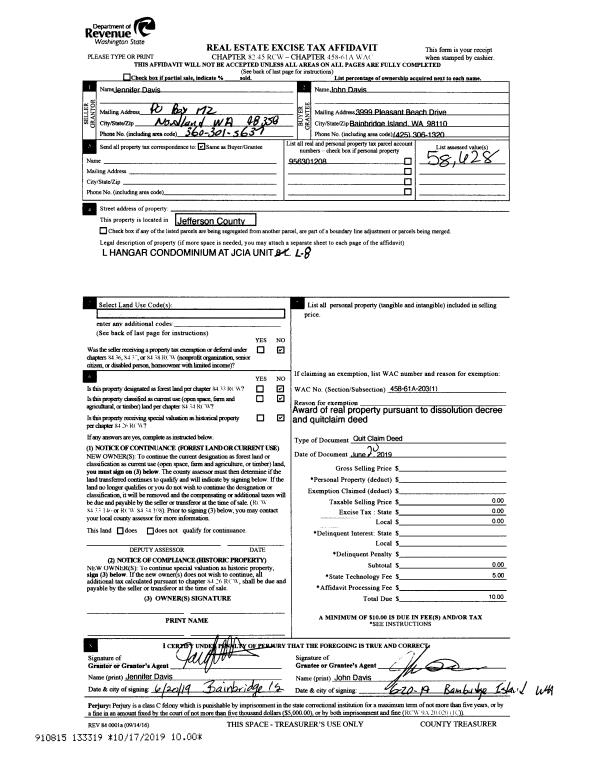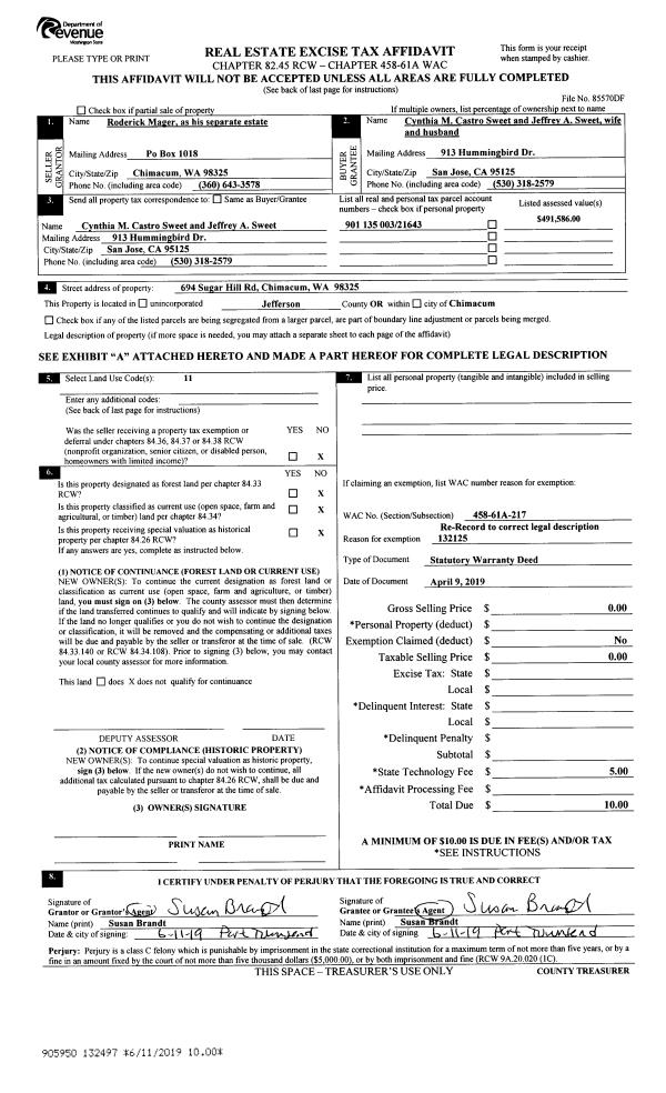 | Mailing Address: | 6743 OAK BAY ROAD PORT LUDLOW, WA 98365-9442 | % Ownership: | 100.0000000000% |