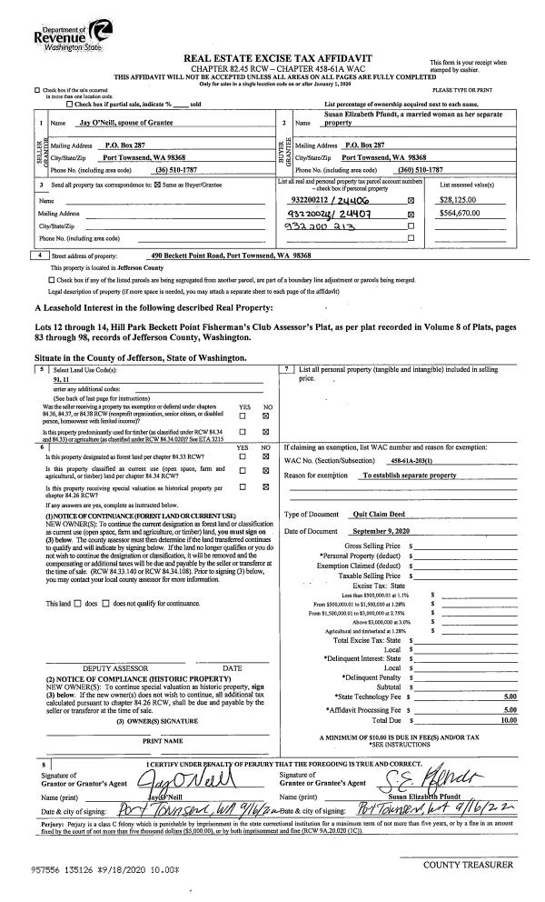 | Mailing Address: | ROBERT V COFER TRUSTEE LAURETTA J COFER TRUSTEE 731 NO NAME RD PORT LUDLOW, WA 98365-8780 | % Ownership: | 100.0000000000% |