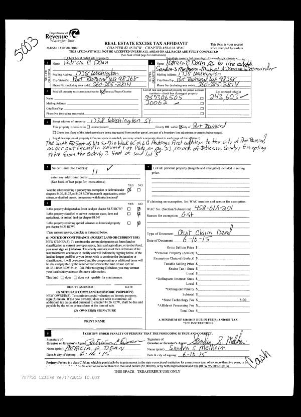 | Property ID: | 20348 | Abbreviated Legal Description: | S6 T28 R1E TAX 19 WITH & SUBJ TO EASE & COV. |