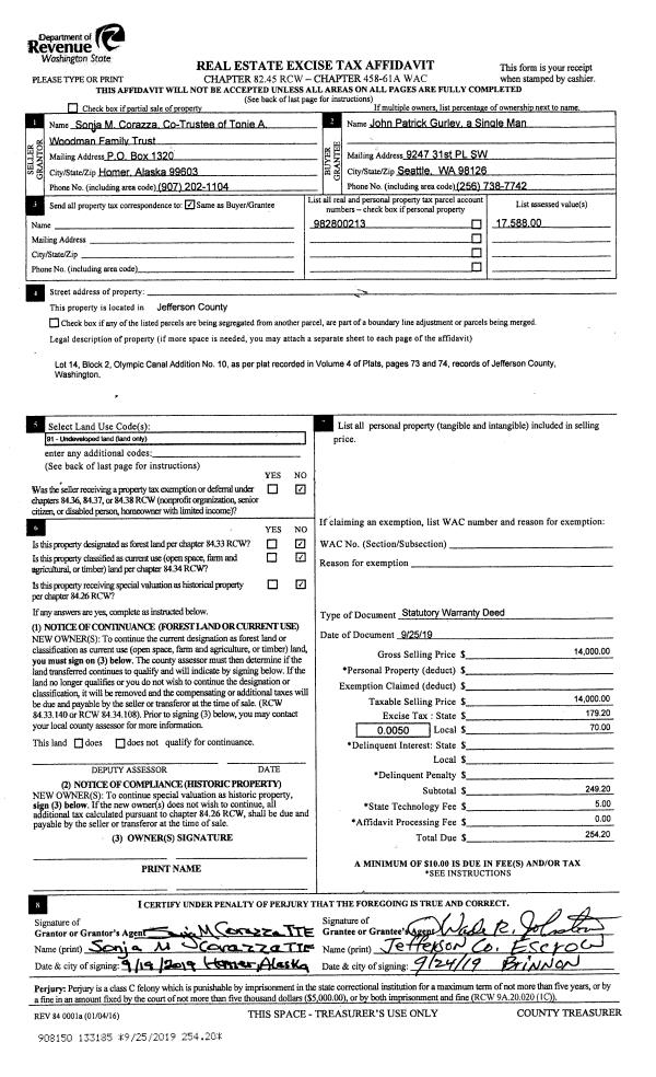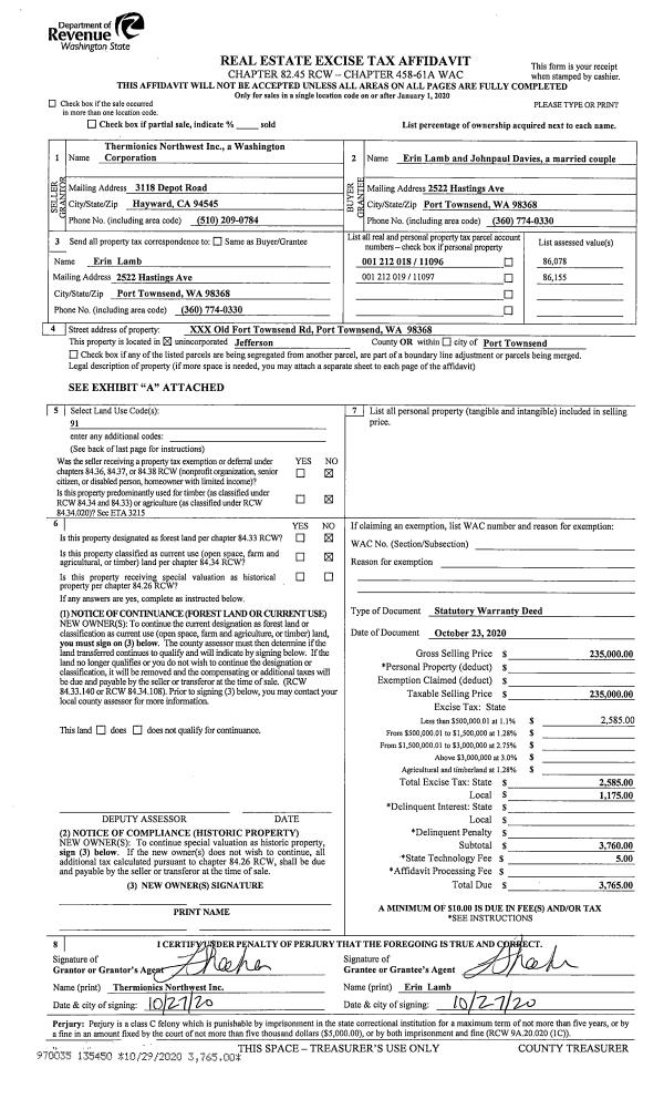 | Mailing Address: | 171 EMBODY RD PORT LUDLOW, WA 98365-8772 | % Ownership: | 100.0000000000% |