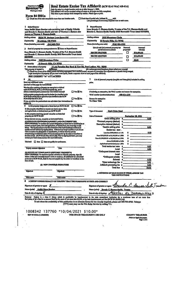 | 9 | 09/06/2000 | BLA | Boundary Line Adjustment | SWANSON, JEAN E REVO LIV | SWANSON, JEAN E REVO LIV TRUST | 0 | 0 | $0.00 | 91453 | 0 |