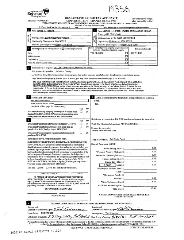 | Mailing Address: | CLIFFORD N WHITEFORD % LISA HULJEV 2427 SWANSONVILLE RD PORT LUDLOW, WA 98365-9780 | % Ownership: | 100.0000000000% |