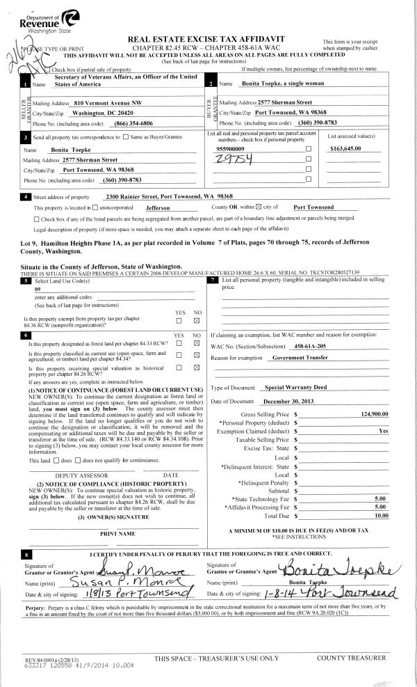 | 1 | 08/14/2019 | SWD | Statutory Warranty Deed | CURTIS B ALBAN | BRONWYN BEATTIE | | | $260,000.00 | 132966 | |