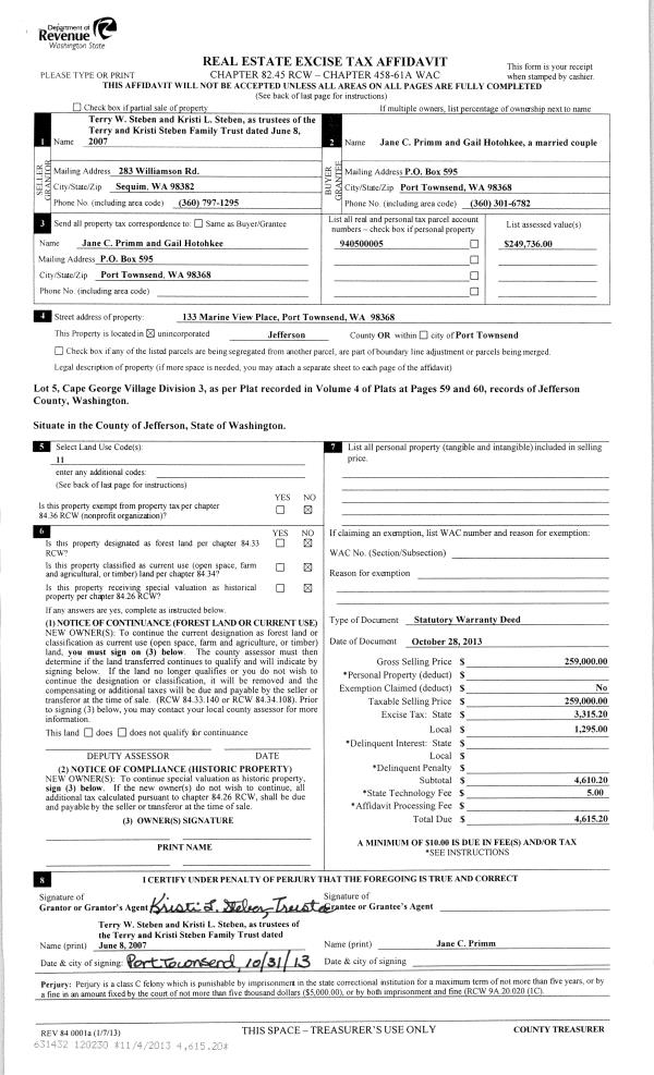 | 4 | 07/31/2003 | SWD | Statutory Warranty Deed | REIN, RICHARD C & PEGGY/T | REIN, RICHARD C/TRUSTEE | 0 | 0 | $0.00 | 98444 | 0 |
