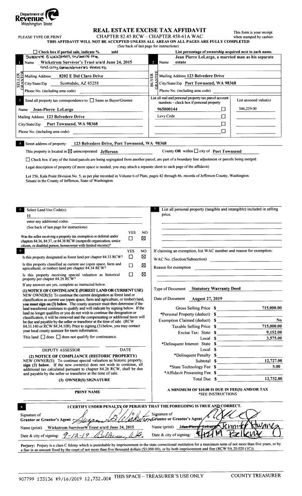| 1 | 02/18/2020 | SWD | Statutory Warranty Deed | DIANE M SPANJER | CHILCOTE REVOCABLE LIVING TRUST | | | $1,210,000.00 | 134000 | |