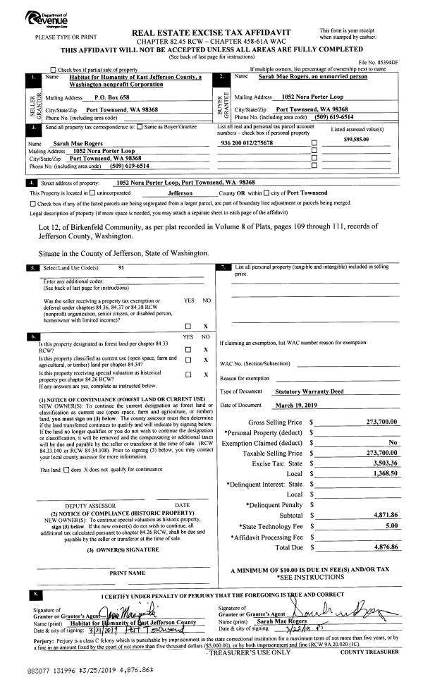 | 1 | 09/10/2019 | SWD | Statutory Warranty Deed | PETERS LIVING TRUST | THOMAS C ALDRICH | | | $80,000.00 | 133129 | |