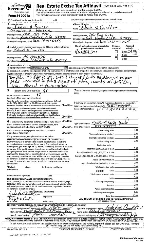 | 1 | 3360-1135F | Medium to High Bank Wtrfrt along Hood Canal | 0.0000 | 0.00 | 0.00 | 0.00 | 0.00 | $161,438 | $0 |