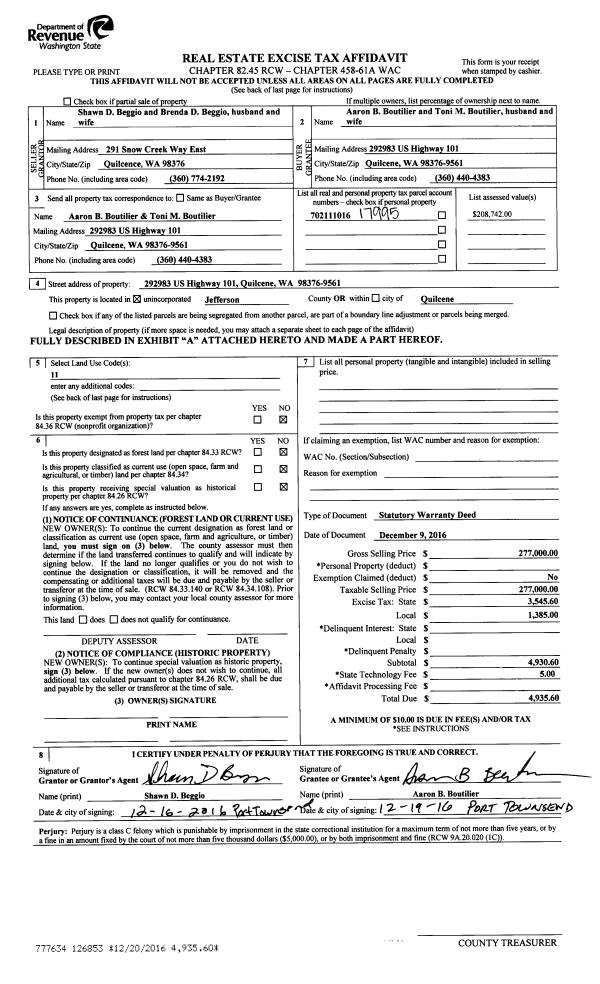 | 6 | 05/10/2017 | SWD | Statutory Warranty Deed | DOUGLAS & VIRGINIA CUYKENDALL REV LIV TRUST | WDK LLC | | | $450,000.00 | 127787 | |