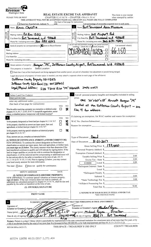 | 6 | 05/10/2017 | SWD | Statutory Warranty Deed | DOUGLAS & VIRGINIA CUYKENDALL REV LIV TRUST | WDK LLC | | | $450,000.00 | 127787 | |