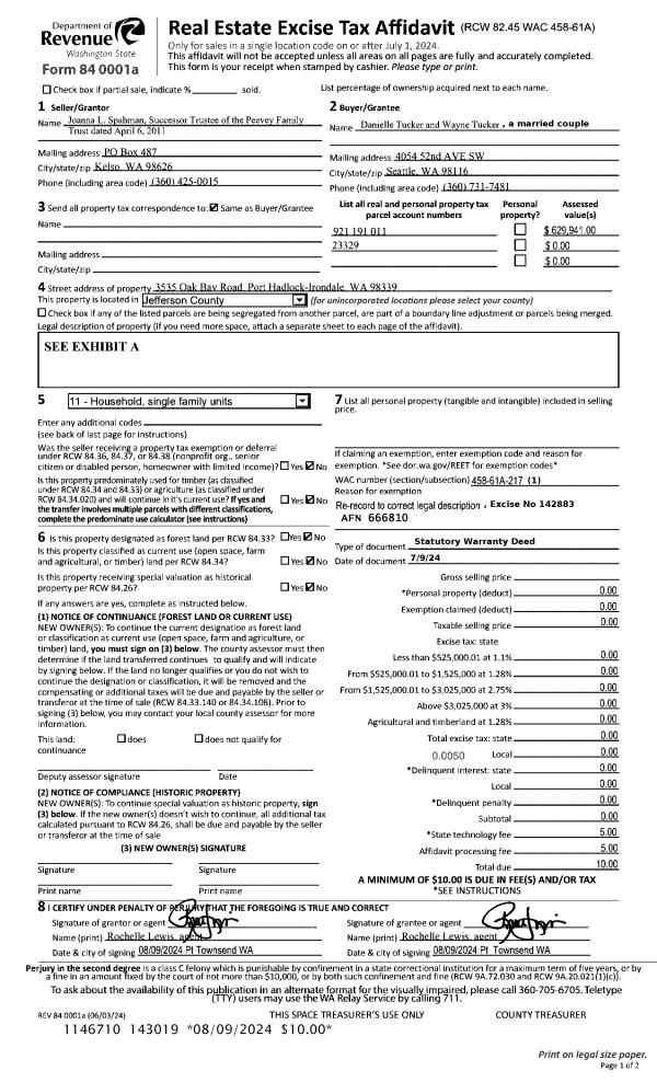 | 2 | 06/03/1998 | SWD | Statutory Warranty Deed | SCOTT, LOUIS E/PHYLLIS C | COLBY, RAYMOND G/LORI A | 0 | 0 | $445,000.00 | 84779 | 0 |