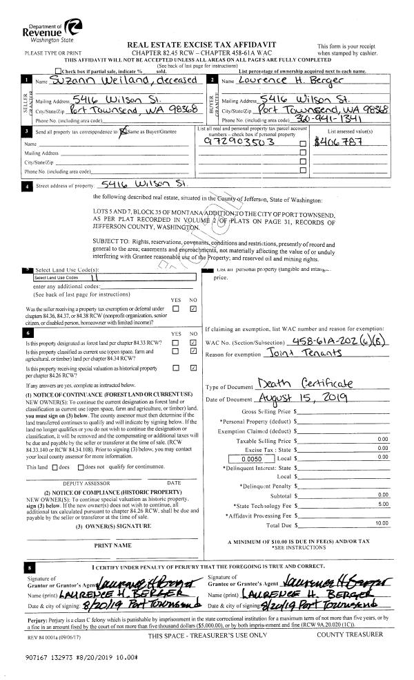 | Mailing Address: | 46 VILLAGE WAY PMB 171 PORT LUDLOW, WA 98365-9762 | % Ownership: | 100.0000000000% |