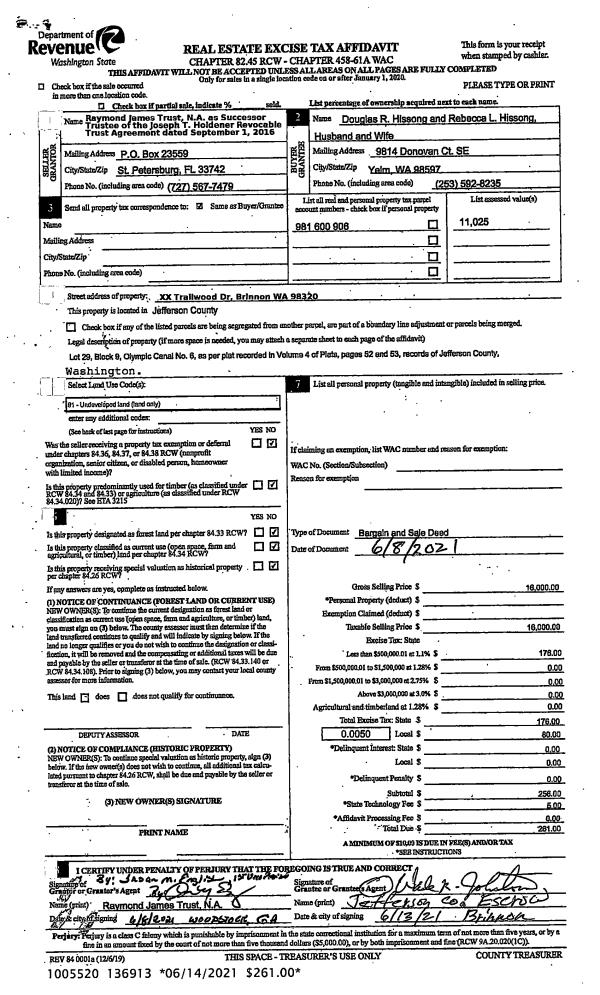 | Mailing Address: | 120 SPINNAKER PL PORT LUDLOW, WA 98365-9540 | % Ownership: | 100.0000000000% |