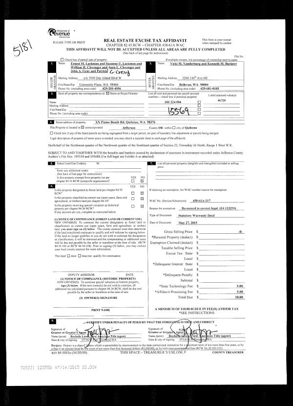 | 5 | 10/22/2014 | QCD | Quit Claim Deed | | | | | | 122147 | |