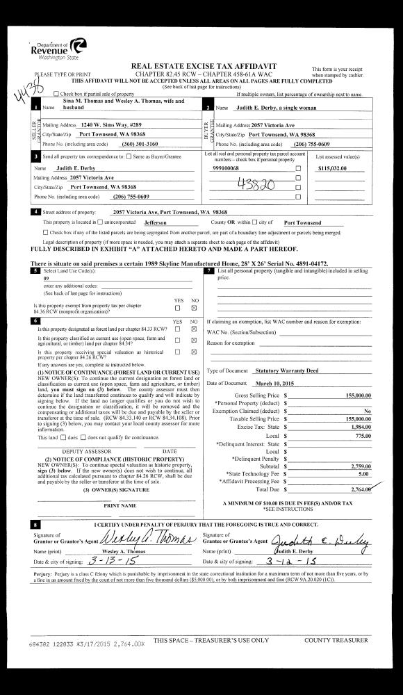 | Mailing Address: | 2123 BEAVER VALLEY RD PORT LUDLOW, WA 98365-9508 | % Ownership: | 100.0000000000% |