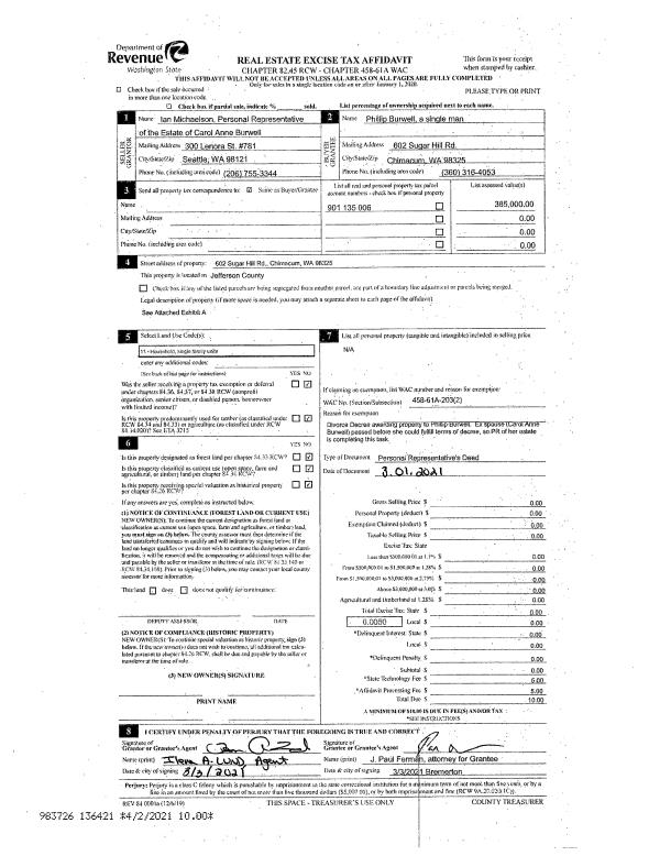 | 4 | 01/08/2015 | SWD | Statutory Warranty Deed | MARGARET S PAINTER | STEPHEN P PORTER | | | $902,500.00 | 122617 | |