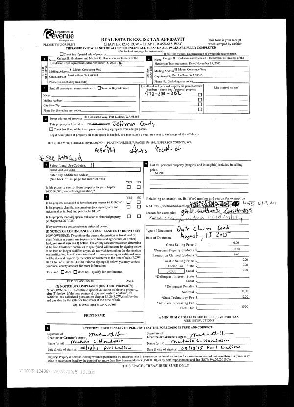 | 1 | 02/14/2022 | QCD | Quit Claim Deed | DENECE A BUTCHART | BUTCHART WHITE ROCK TRUST | | | | 139983 | |