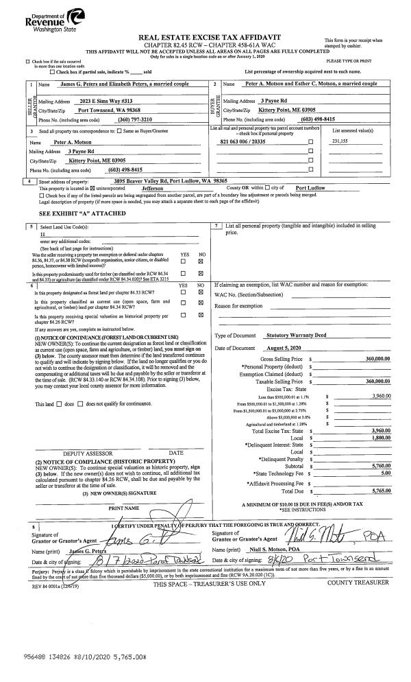 | 3 | 03/10/2015 | SWD | Statutory Warranty Deed | JAMES A HOSELTON TRUSTE | JAMES A HOSELTON TRUST | | | | 122882 | |