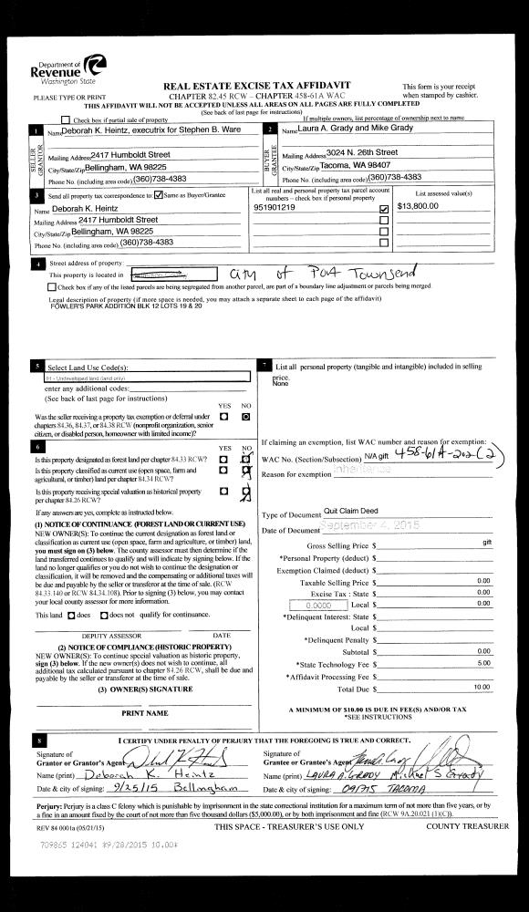 | Mailing Address: | 102 SHIP VIEW CT PORT LUDLOW, WA 98365-9557 | % Ownership: | 100.0000000000% |
