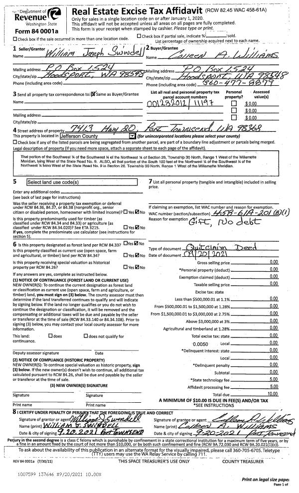 | 4 | 12/30/1996 | SWD | Statutory Warranty Deed | POPE RESOURCES | REED, BOB L/JOAN MERRIDITH | 0 | 0 | $25,000.00 | 81205 | 0 |