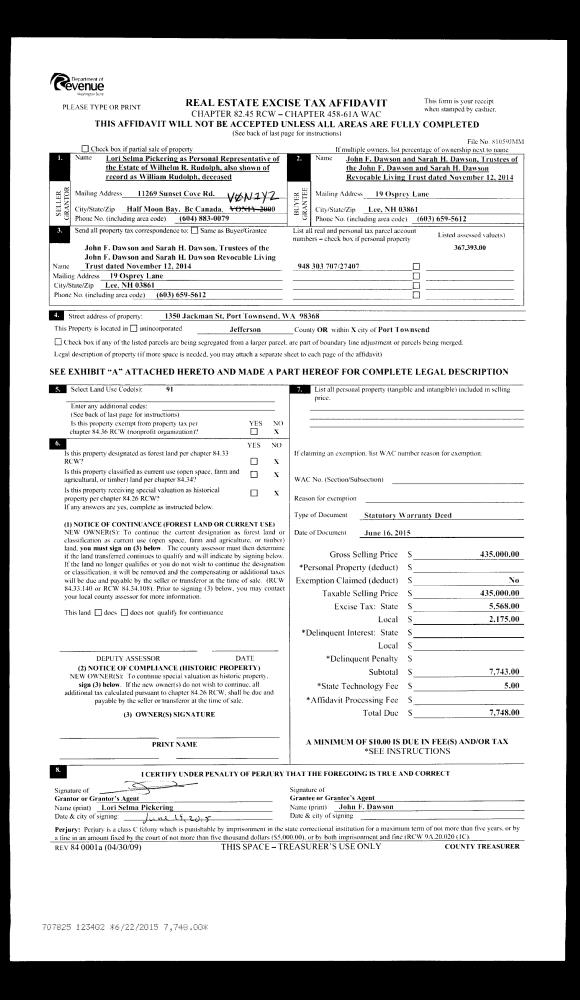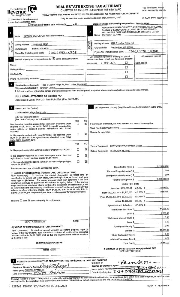 | 2 | 07/27/2021 | SWD | Statutory Warranty Deed | RYAN & RACHEL OHR | NORTHWEST ESTATE PLANNING & PROBATE | | | $300,000.00 | 137305 | |