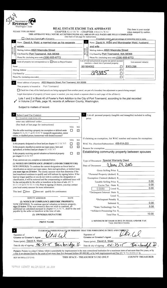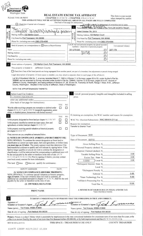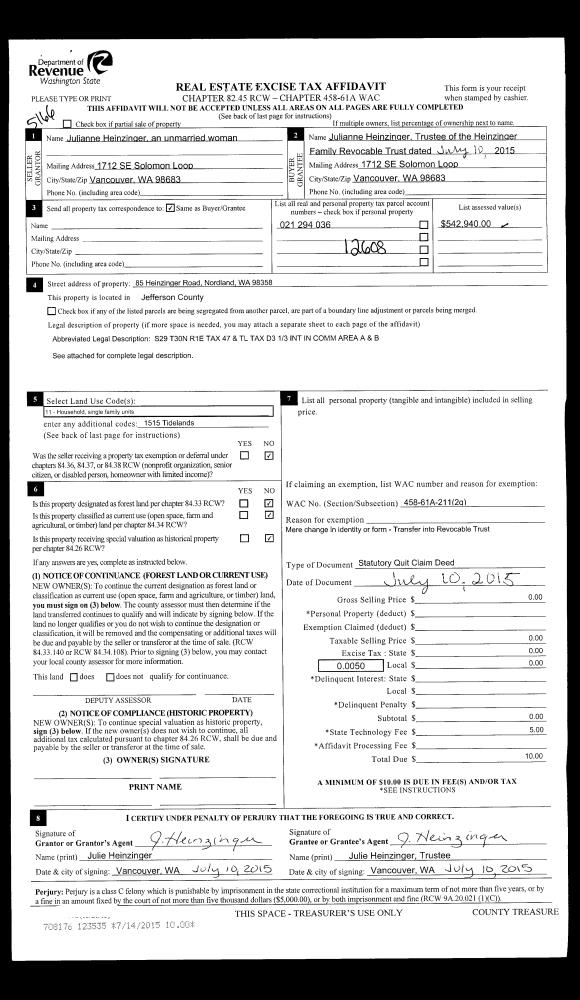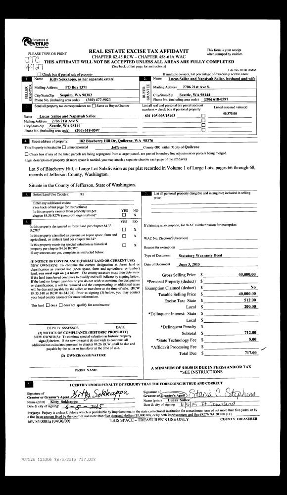 | 5 | 12/28/2015 | BSD | Bargain and Sale Deed | KEY TRUST CO OF THE NW TRUSTEE | CEDARLAND FOREST RESOURCES, LLC | | | $52,500.00 | 124641 | |