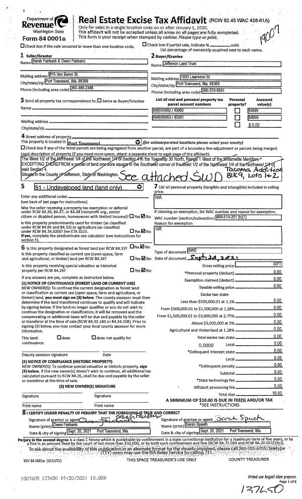 | 2 | 04/21/2017 | SWD | Statutory Warranty Deed | THOMAS H GISKE | WILLIAM D & CHERYL L SHARP | | | $1,035,000.00 | 127569 | |