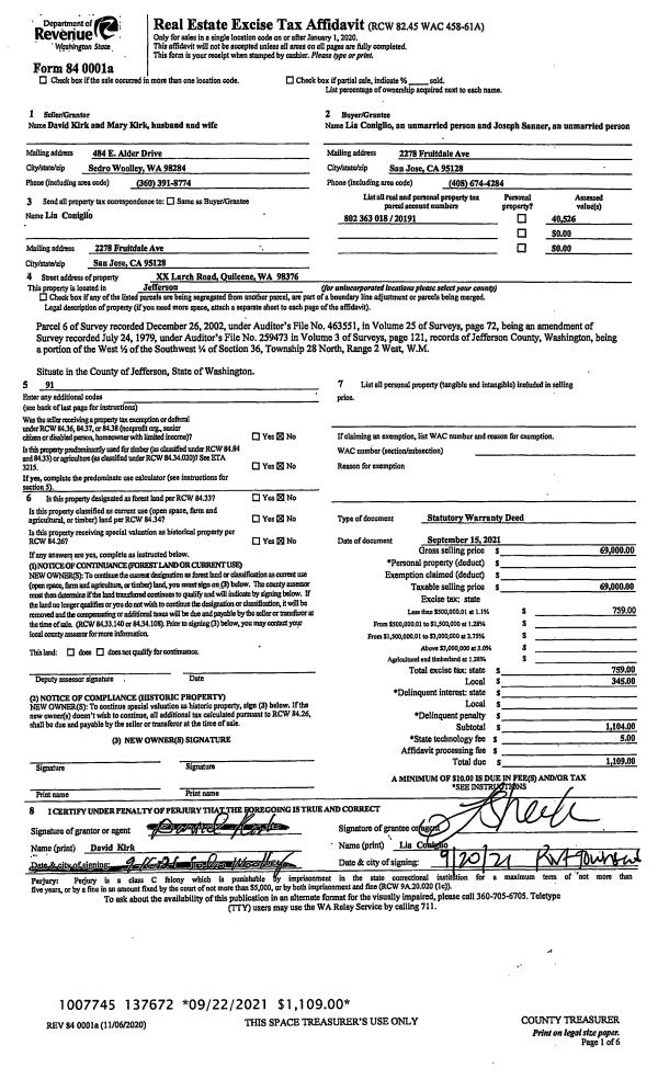 | Mailing Address: | CAROLYN A EAGAN 235 MARGARET ST PORT LUDLOW, WA 98365-9281 | % Ownership: | 100.0000000000% |