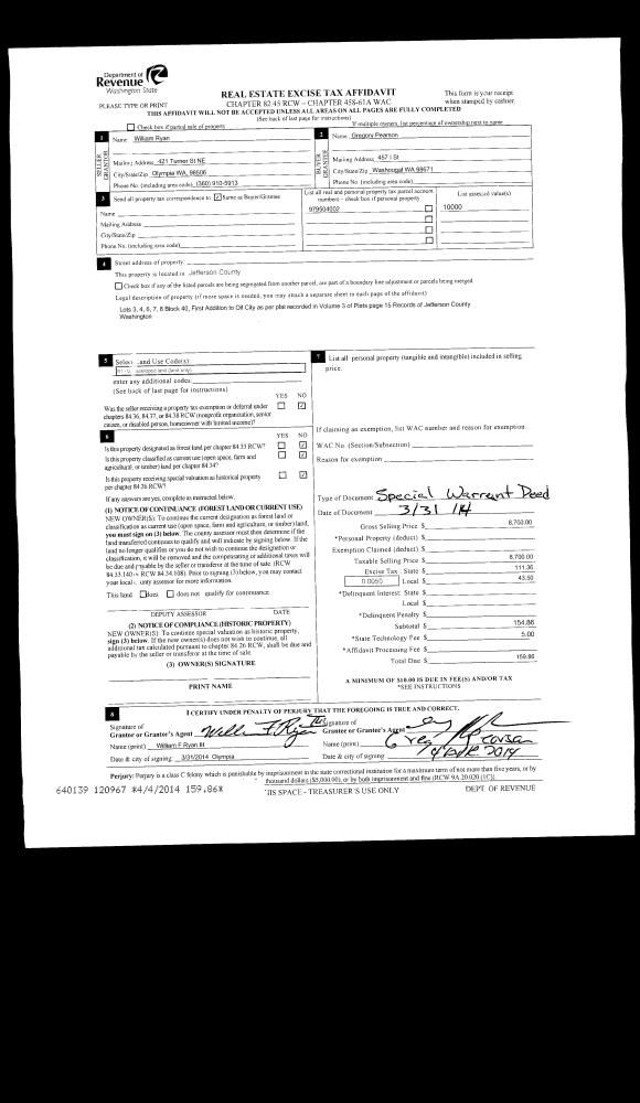 | 7 | 01/10/2013 | TRED | Trustee Deed | BISHOP, WHITE, MARSHALL & WEIBEL, PS | WASHINGTON FEDERAL SAVINGS | | | | 118663 | |