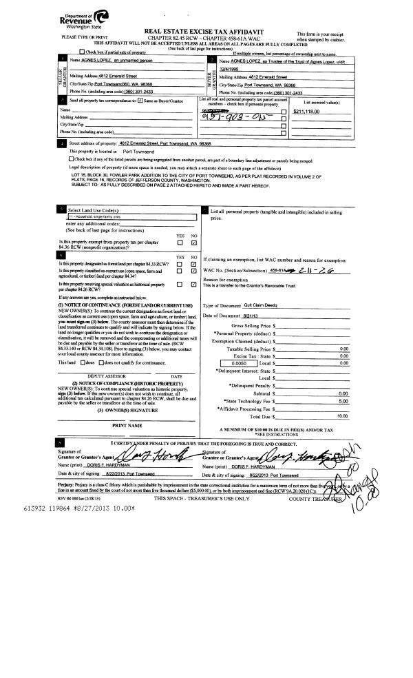 | Mailing Address: | 1641 S 370TH PL FEDERAL WAY, WA 98003-7587 | % Ownership: | 100.0000000000% |