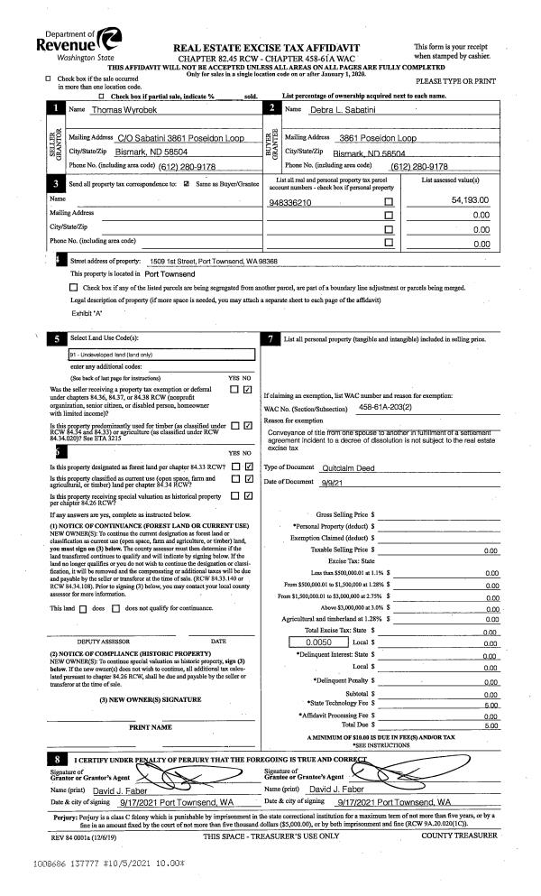 | Mailing Address: | KATHERINE DITTMAR 30 WATNEY LN PORT LUDLOW, WA 98365 | % Ownership: | 100.0000000000% |