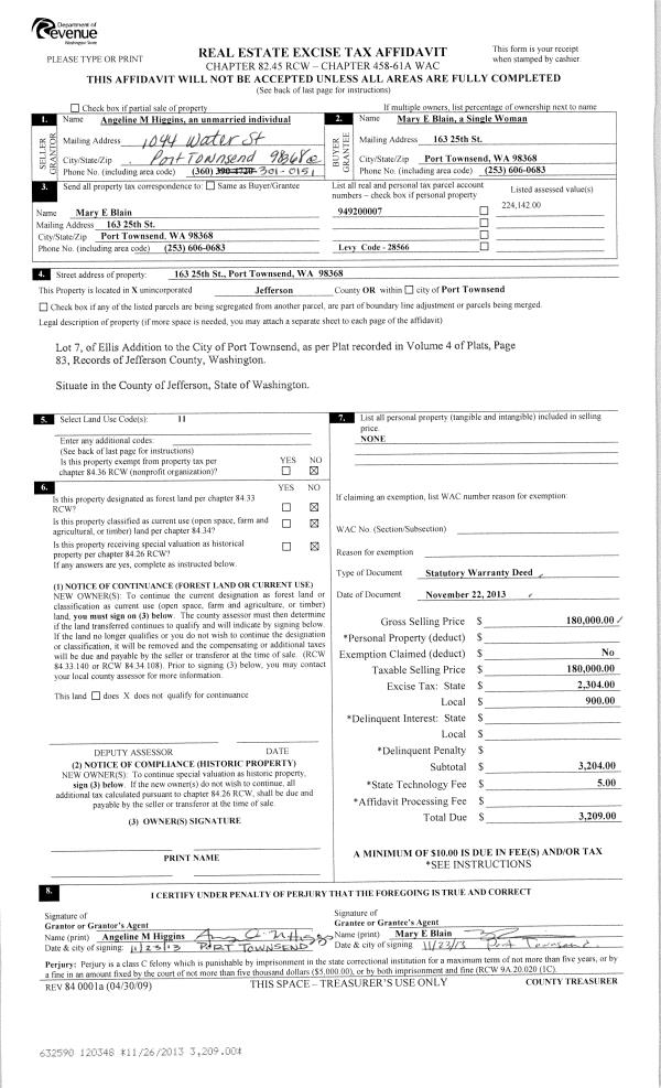 | 3 | 09/09/2014 | SWD | Statutory Warranty Deed | BLAINE P SHAFFER | WILLIAM R ELY & MICHELE M DOWNEY | | | $424,200.00 | 121870 | |