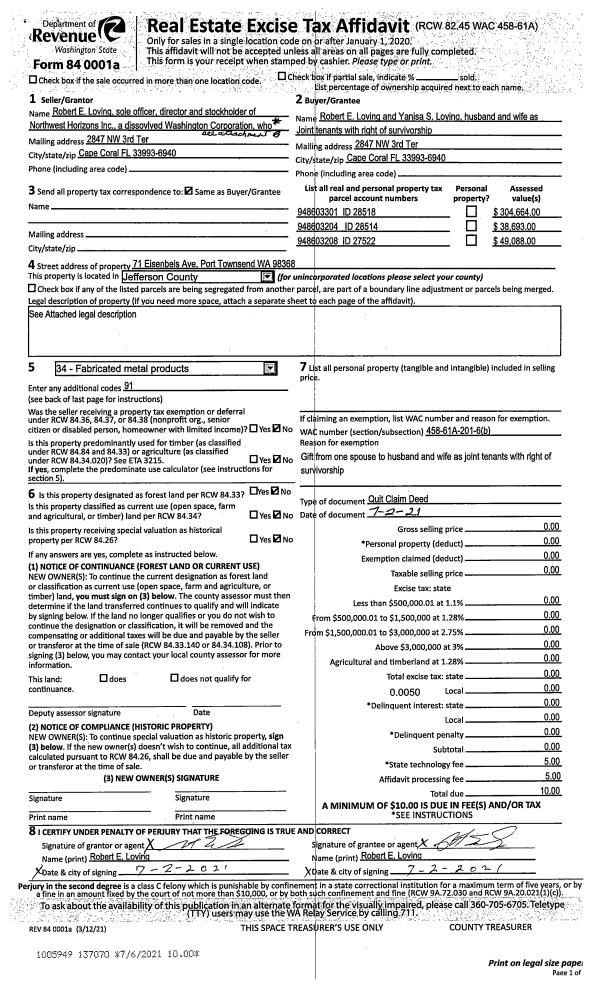 | Mailing Address: | MARIA A DEDITIUS PO BOX 307 COSMOPOLIS, WA 98537-0307 | % Ownership: | 100.0000000000% |