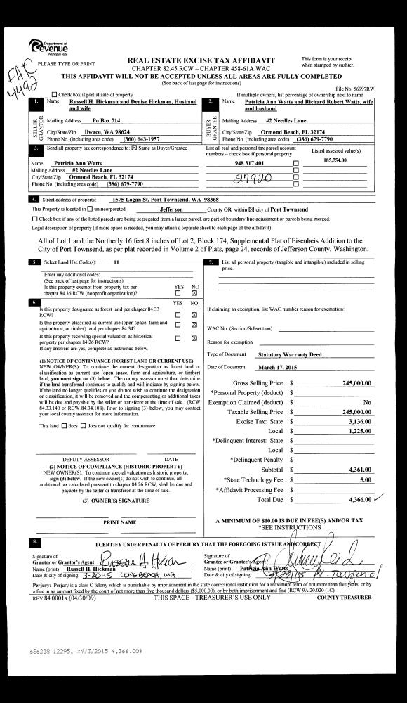 | 2 | 04/25/2002 | SWD | Statutory Warranty Deed | ROBERT K JELLISON | KENNETH W HANSON, PATRICIA M T | 0 | 0 | $0.00 | 94504 | 0 |