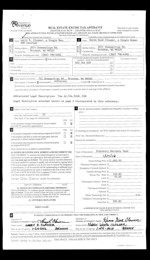 | Mailing Address: | BARBARA F SMITH 605 SHINE RD PORT LUDLOW, WA 98365-9279 | % Ownership: | 100.0000000000% |