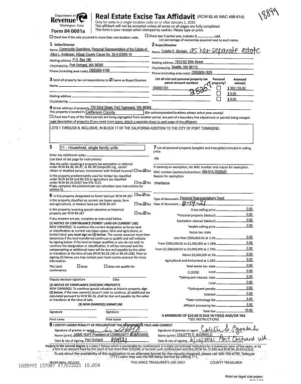 | 2 | 07/05/2018 | SWD | Statutory Warranty Deed | STEVEN CAMERON | CAMERON TRUST AGREEMENT | | | | 130590 | |