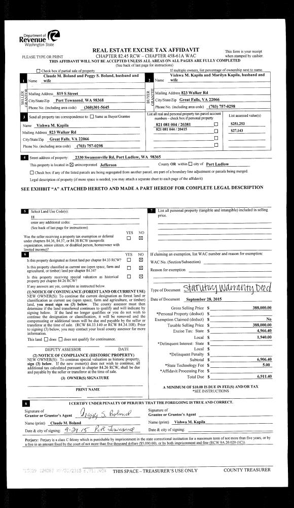 | Mailing Address: | 913 SHINE RD PORT LUDLOW, WA 98365-9652 | % Ownership: | 100.0000000000% |